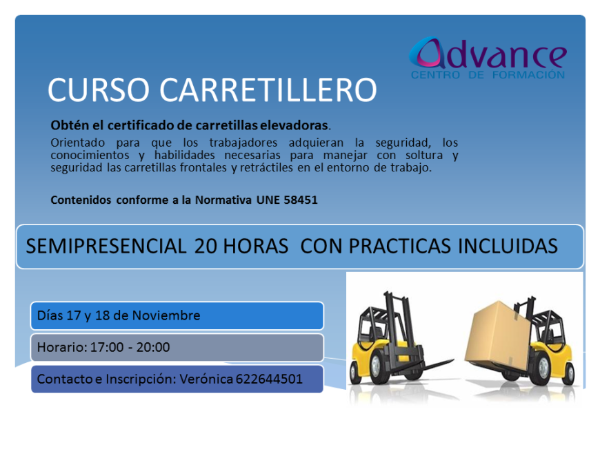 suelen exigir cursos de carretillero como nuestros cursos Advance para poder acceder a un puesto de trabajo con riesgos importantes.